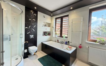 - jasny, przestronny salon z wyjściem na taras i ogród