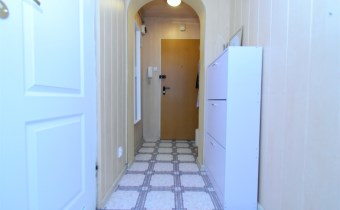 Na podłogach w pokoju i części sypialnianej panele, w łazience,kuchni i przedpokoju - terakota. Okna PCV, .Budynek zabezpieczony domofonem.