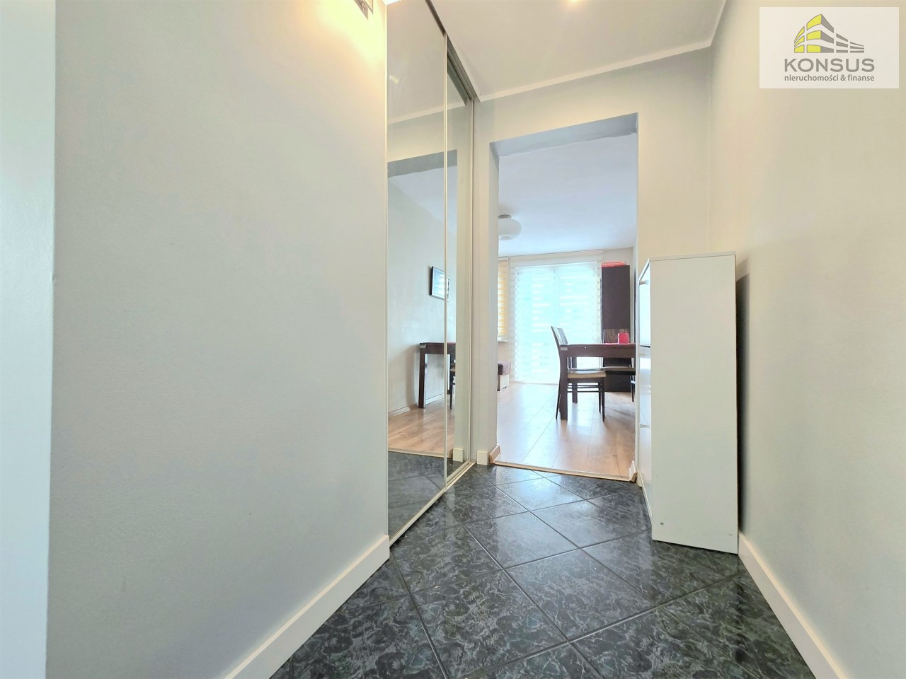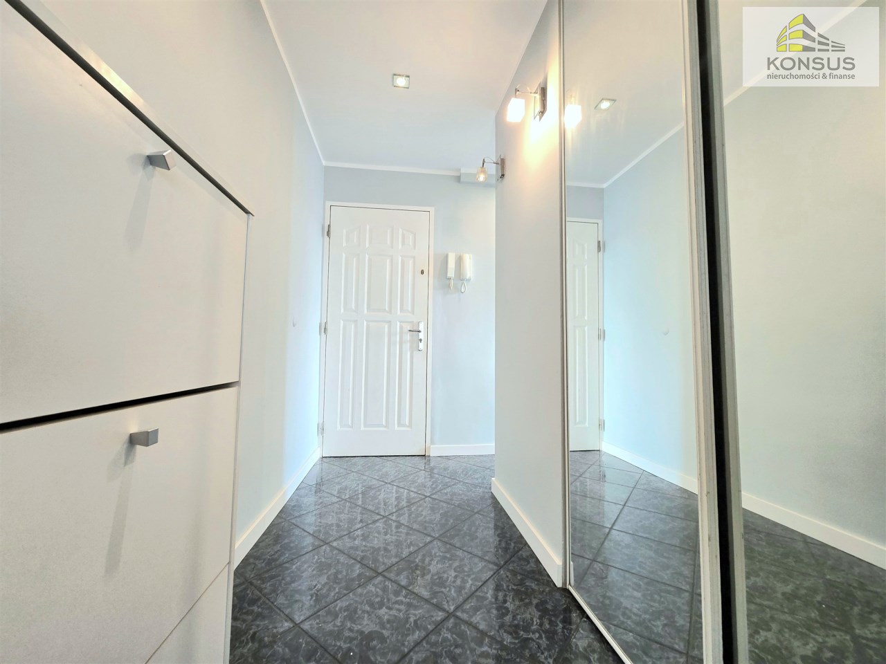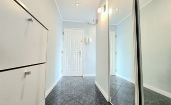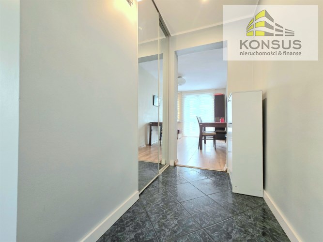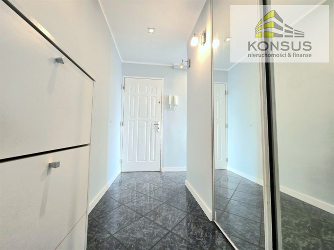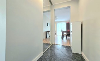 - funkcjonalny przedpokój z szafą w zabudowie z lustrami.