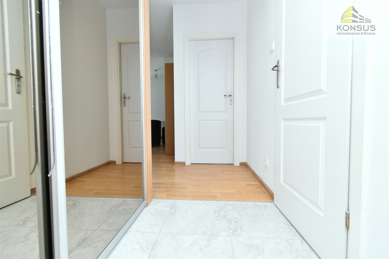 - przedpokoju z pojemną szafą w zabudowie z lustrami.