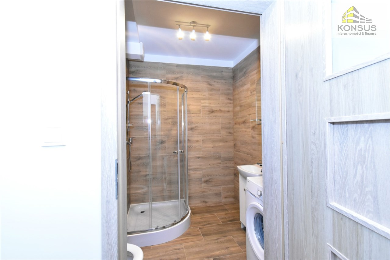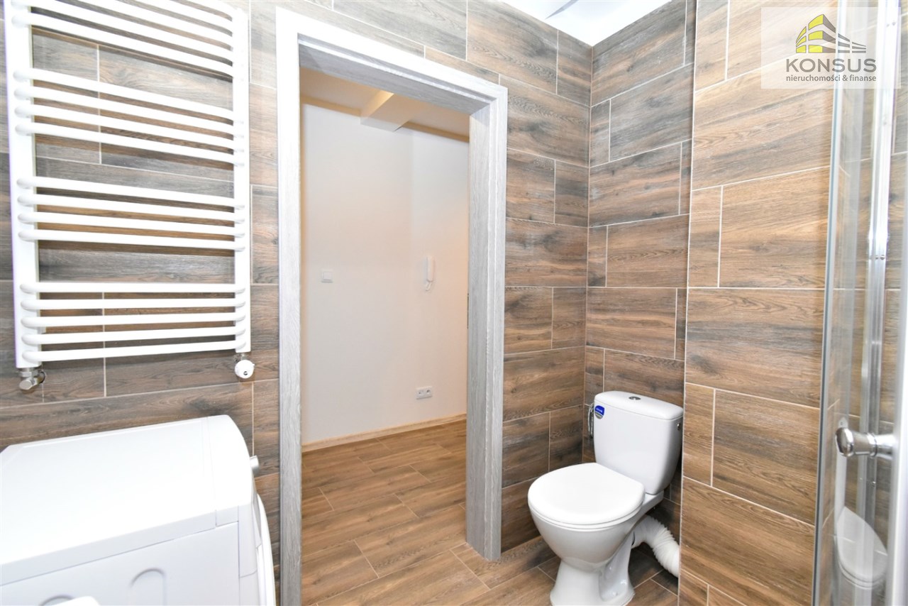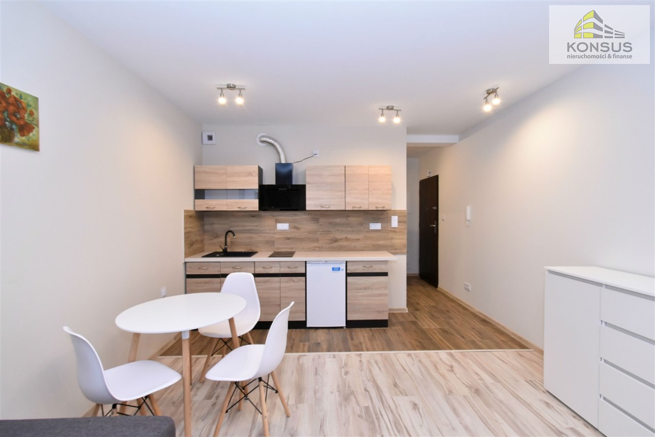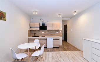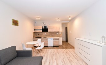 W skład mieszkania wchodzą: salon z aneksem kuchennym, łazienka razem z WC, przedpokój. W budynku winda, przestronna klatka.